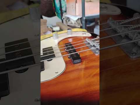 I first worked on this beat-up sunburst RCE four-string bass back in September 2025. That job turned out to be a full overhaul involving parts replacement and rewiring. Well, owner Fonzie Osman has brought it in today for a string change and setup. Fonzie has also provided two sets of strings, namely, D'Addario EXL170s and Ernie Ball Hybrid Slinkys. After some discussion, we've decided to go with the Hybrid Slinky set as it features a heavier E string.
